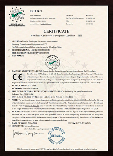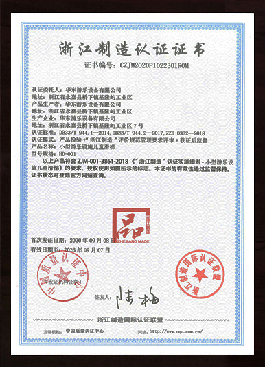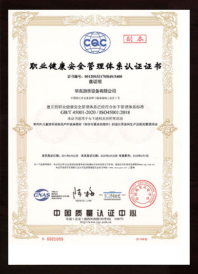 银河geg优越会运动游乐的产品先后通过ISO国际质量管理、ISO环境管理、职业健康安全管理、安全生产标准化、知识产权管理体系、德国TUV、3C、SGS等国家和国际权威认证,公司先后被相关政府评为高薪技术企业、巨龙企业、知名商标、永嘉县“县长质量奖”、明星企业、高成长型企业等荣誉称号!
